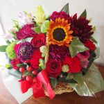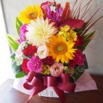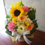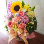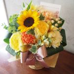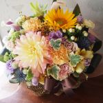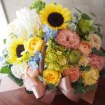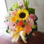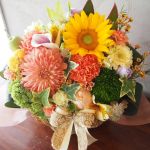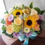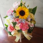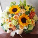 夏の代表花で人気高いヒマワリ。今季もそろそろシーズンの終わりが見えてきて、ちょっぴり寂しい気持ちと秋のはじまりをつげる可愛い小花達のコンビネーションをアレンジにたっぷり詰め込みました♪それでは2020年8月の出荷画像一例です。