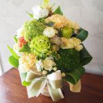 季節の旬花で作ったアレンジはこちらにラッピングとメッセージカードをお付けいたします。